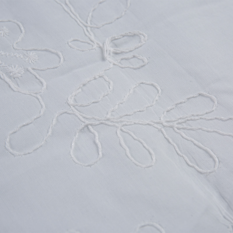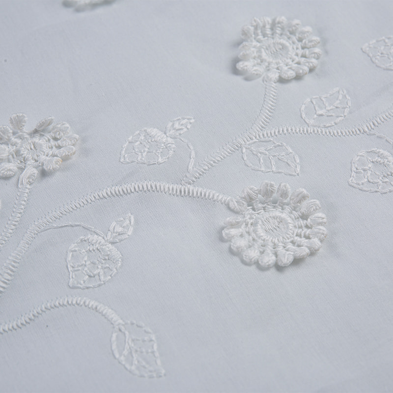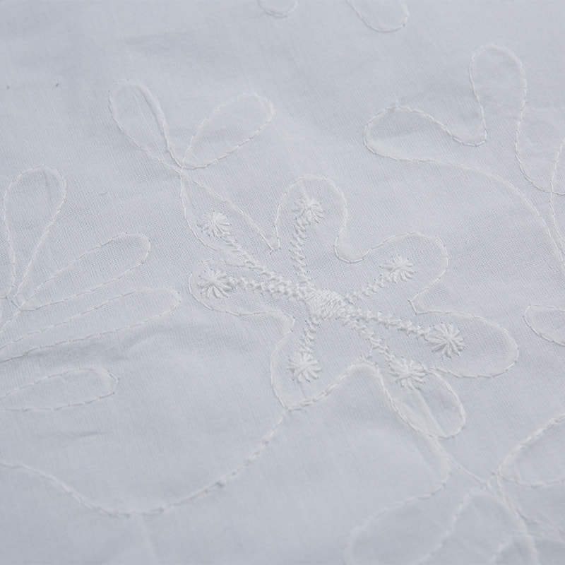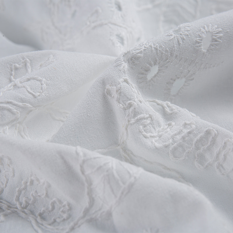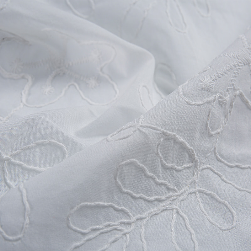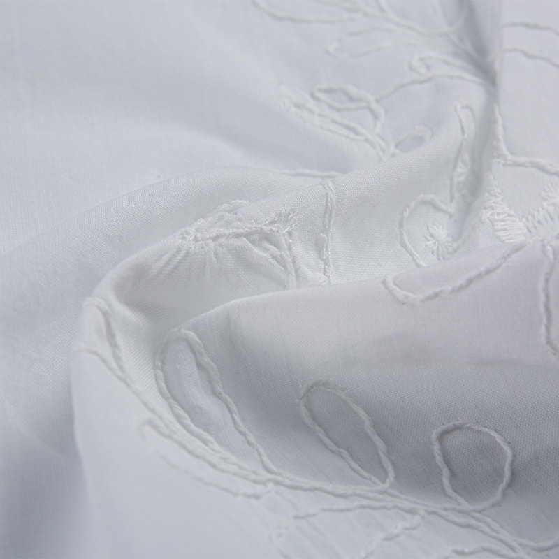 Cotton 3D embroidered skin-friendly snag-resistant fabric is made from high-quality cotton fibers combined with advanced 3D embroidery technology, creating a textured fabric with a rich, three-dimensional effect. It not only presents a unique visual appeal but also boasts excellent skin-friendly properties, making it suitable for clothing designed for direct contact with the skin. The fabric's special weaving technique enhances its snag resistance, preventing the snagging issues commonly found in ordinary cotton fabrics.