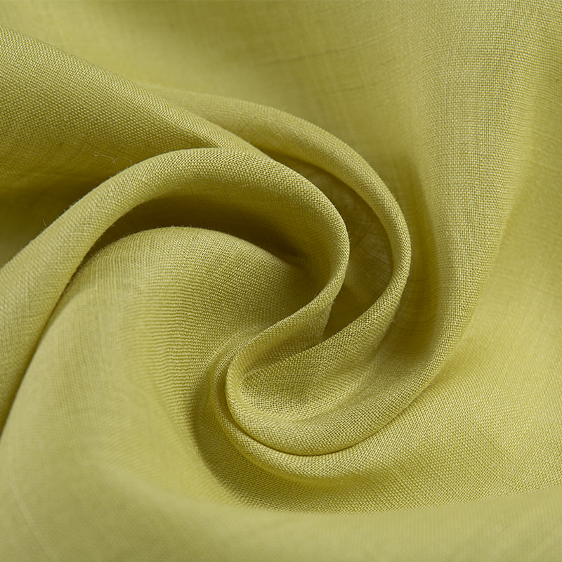 Solid color dyed skin-friendly linen fabric uses high-quality natural linen fibers and a fine dyeing process, showcasing a unique natural texture and comfortable feel. The fabric's skin-friendliness is meticulously treated to ensure comfortable and breathable wear, suitable for everyday wear and providing a cool and refreshing feel against the skin in hot summer.