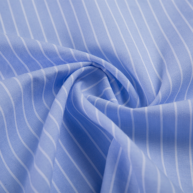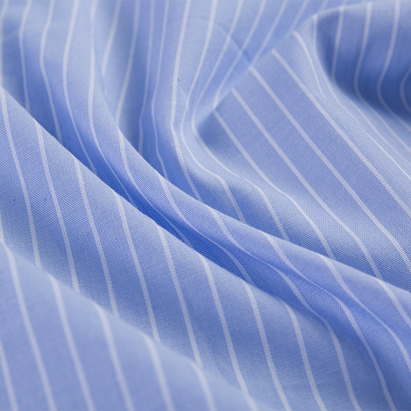 Stripe pure cotton poplin shirt fabric is made from pure cotton, treated with meticulous dyeing and weaving techniques to showcase an elegant striped design. The fabric has a smooth, delicate surface, a soft touch, and excellent breathability, making it suitable for all seasons, especially spring and summer, keeping the skin comfortable. The natural properties of pure cotton fibers make this fabric very durable, while also providing excellent moisture absorption to effectively wick away sweat and keep you dry.